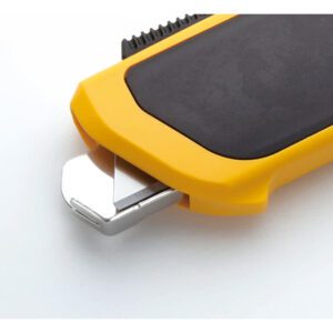 OLFA SK-6 potpuno automatski sigurnosni skalpel sa zaštitom oštrice nudi dodatni sloj sigurnosti sa štitnikom koji se automatski spušta oko sečiva kada sečenje počne. Kada sečivo napusti površinu za sečenje, zaštitni štitnik zatvara sečivo kako bi zaštitio korisnika od izlaganja sečivu i povreda. Automatsko aktiviranje štitnika sečiva se dešava bez obzira da li je klizač sečiva uključen ili ne, što ovaj skalpel čini vrhunskim za zaštitu korisnika. Ograničena dubina oštrice sa zaobljenim vrhom čuva sadržaj pakovanja od oštećenja. Ojačana staklenim vlaknima znači da ova izdržljiva drška protiv klizanja može da izdrži udarce i svakodnevno habanje.